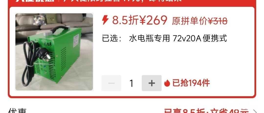 出售20A72V水电瓶充电器使用一年不到140出手