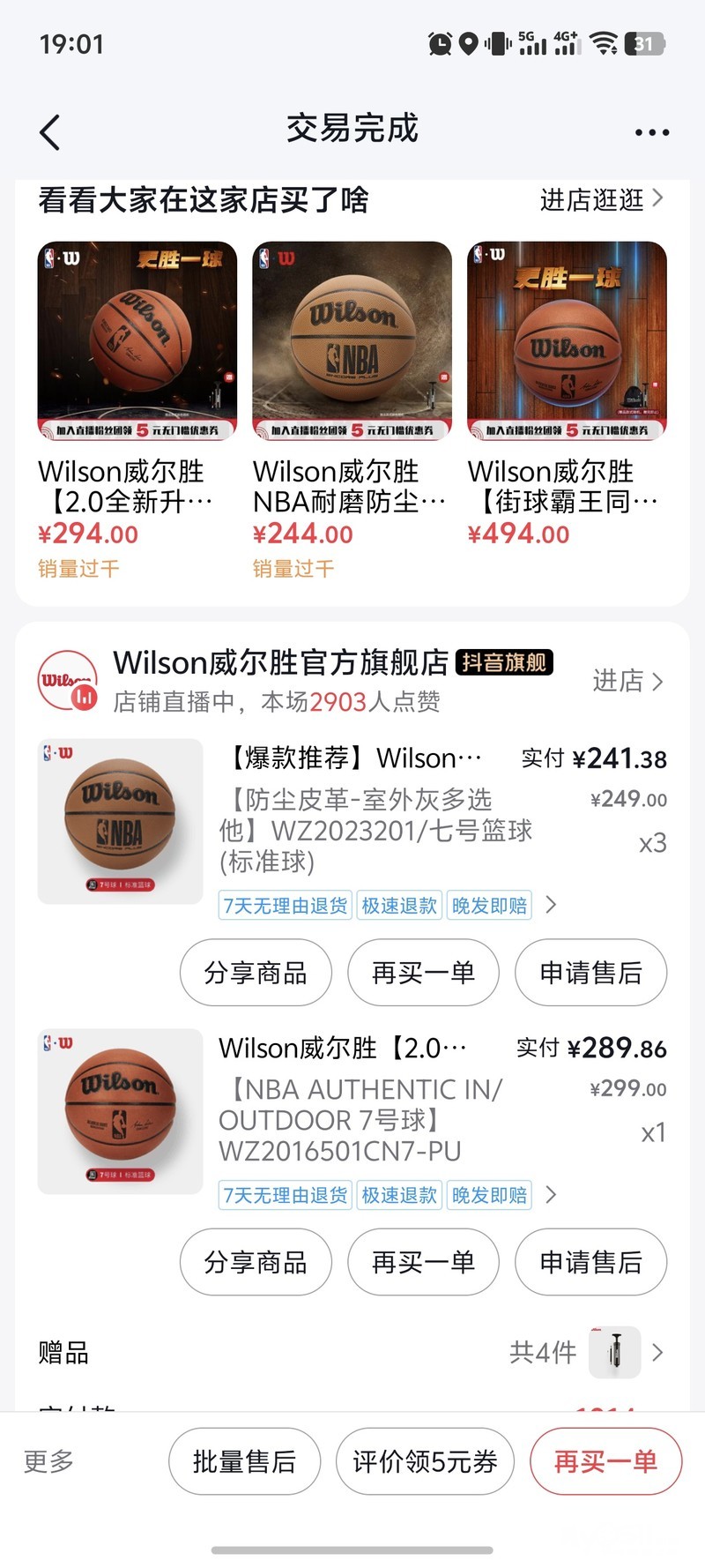 wilson篮球,共四个,买了都没拆,wz2023201共3个,wz2016501cn7-pu共1个。价格可议。送打气筒。原价都是249,299,现在200一个出