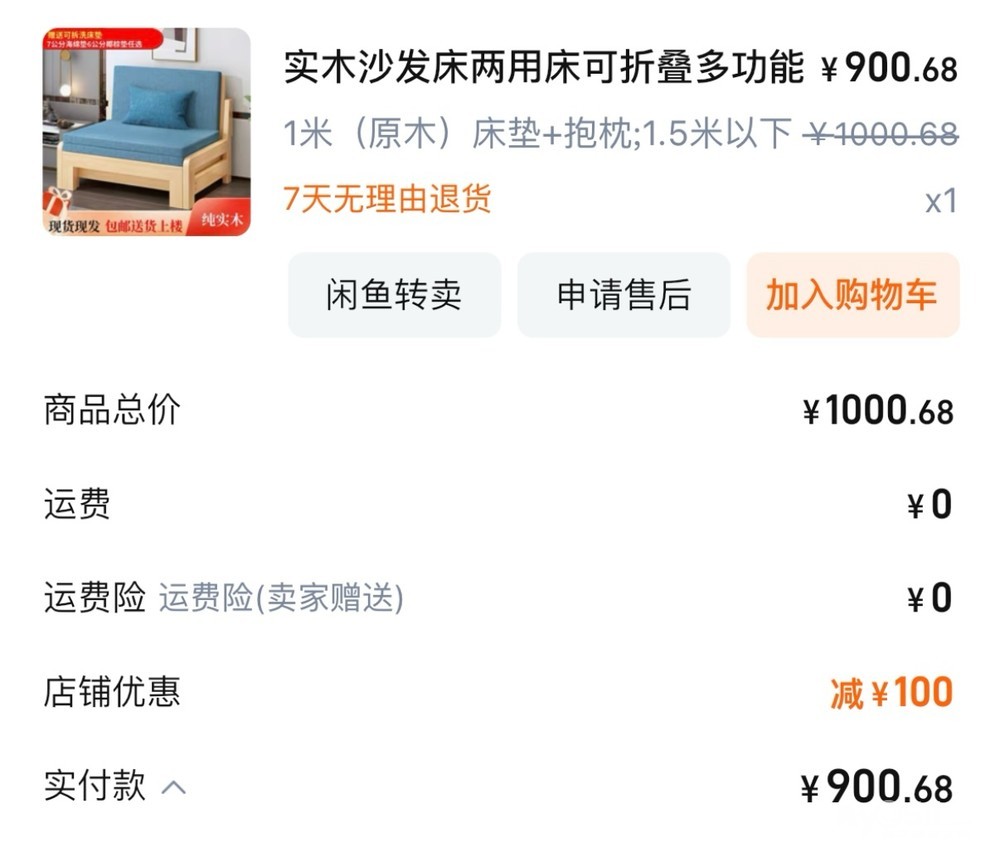 冰箱280,沙发床350