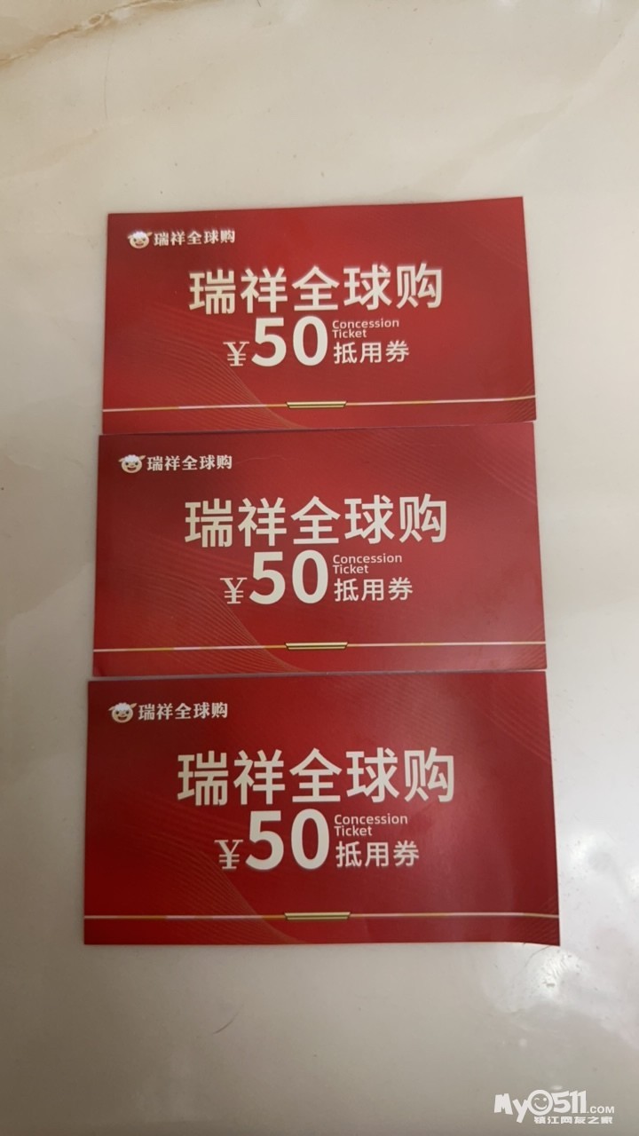 转让3张瑞祥门店50元抵用券