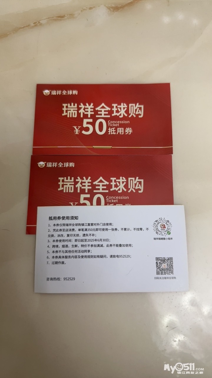 转让3张瑞祥门店50元抵用券 [广告推广]