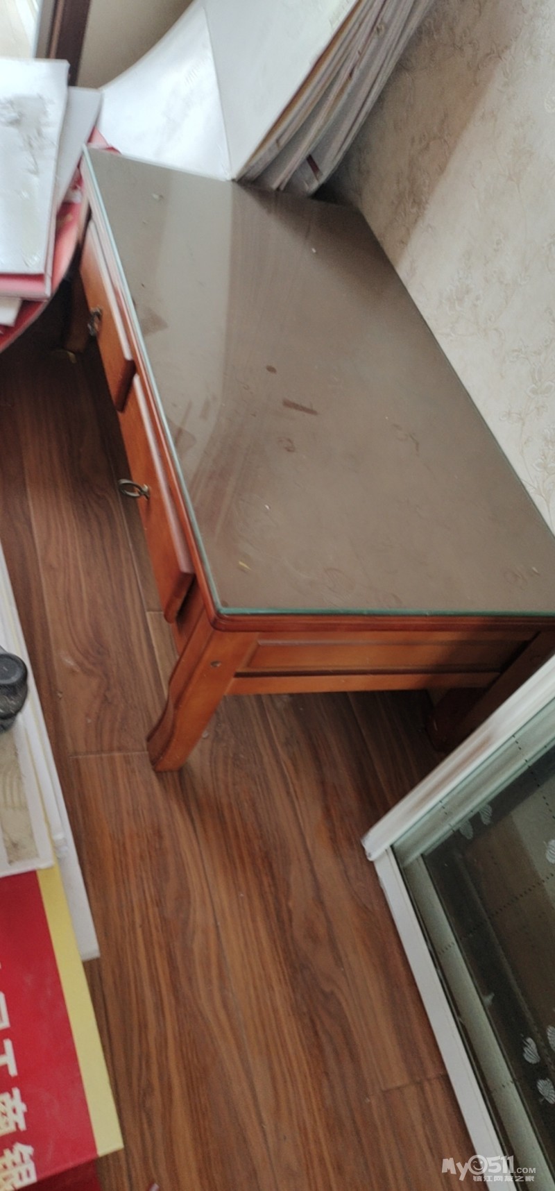 实木小方桌上面有块钢化玻璃,一起1百5自提