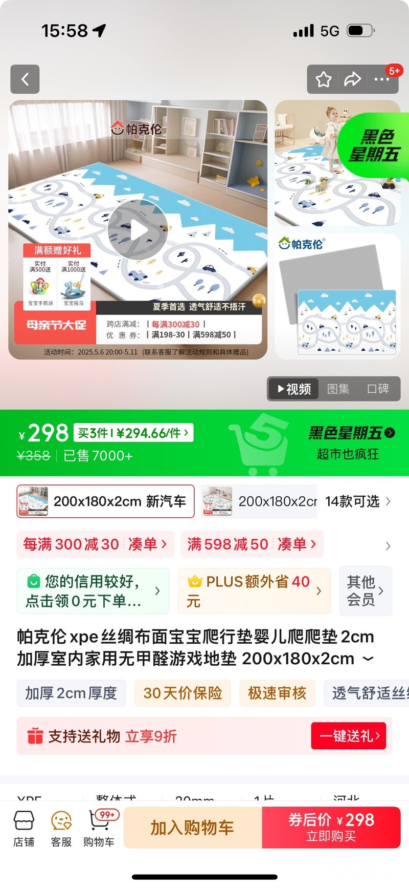 » 帕克伦xpe丝绸布面宝宝爬行垫婴儿爬爬垫加厚室内家用无甲醛游戏地垫2米