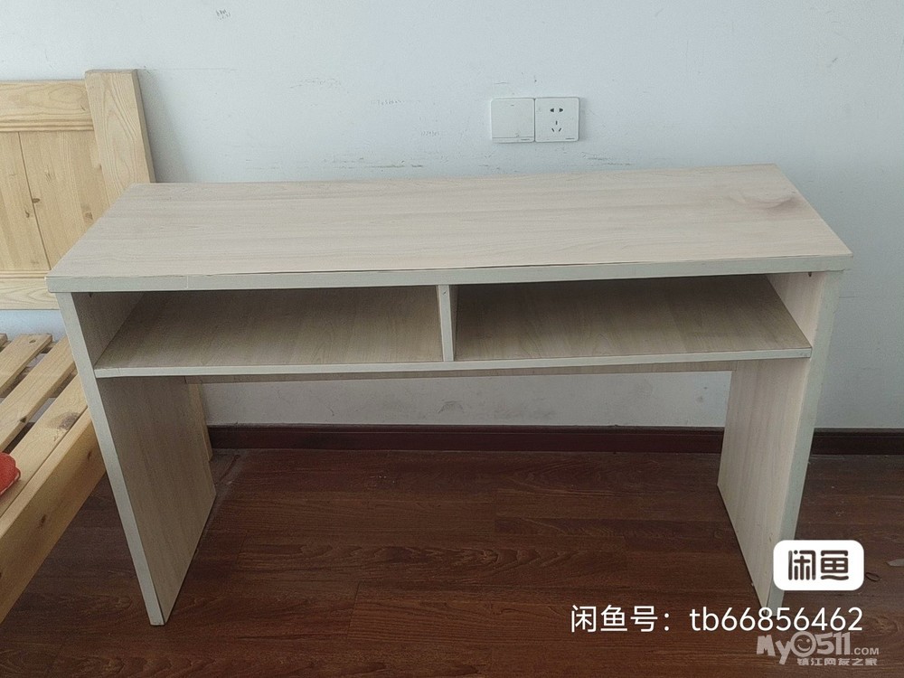 几乎全新,做工结实,桌面宽敞,带双层储物格设计。尺寸120*40*75cm,适合家用办公,当床头柜前台都行。木质材料,表面光滑无划痕,整体成色很好。