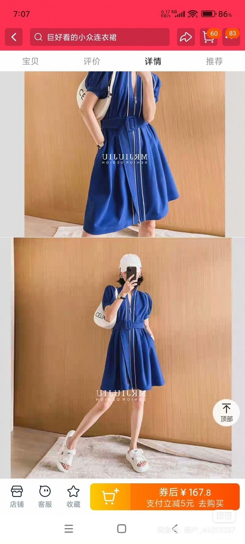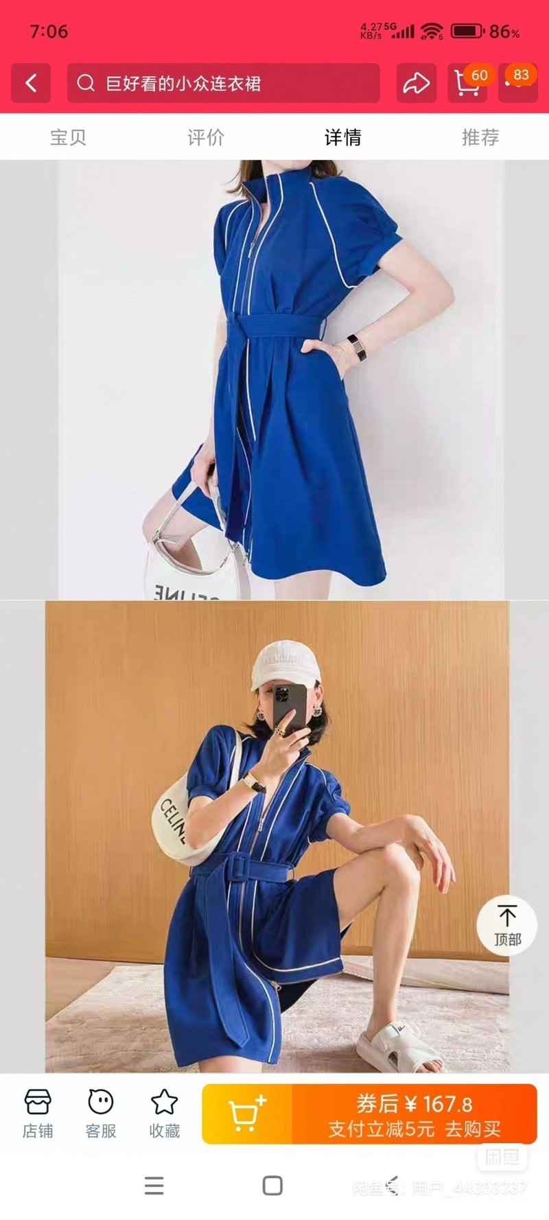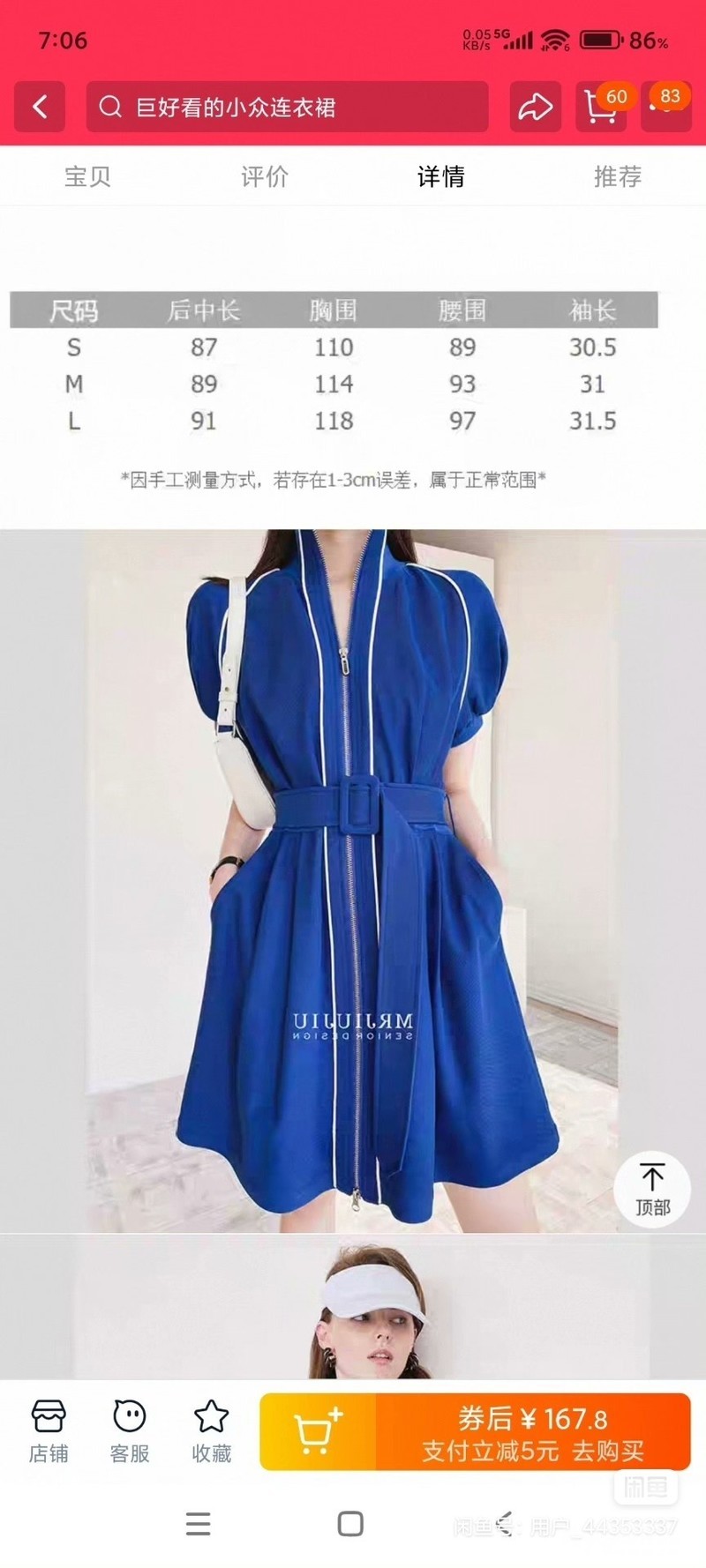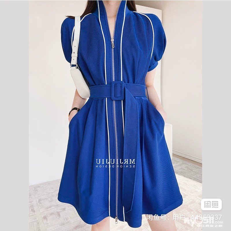 俏皮活泼运动蓝色法式连衣裙女轻熟风收腰撞色设计感…S号 偏大,照片有尺码表