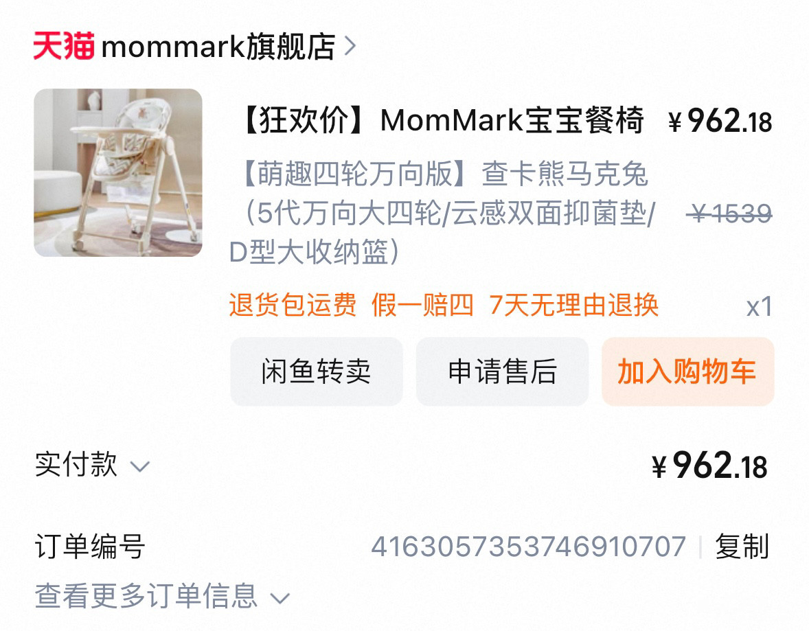 转闲置餐椅,购买时962元,宝宝3个月时候买的,非常好用,可以躺下喝奶,坐着玩玩具。简直就是哄娃神器。9成新,目前价格500元。