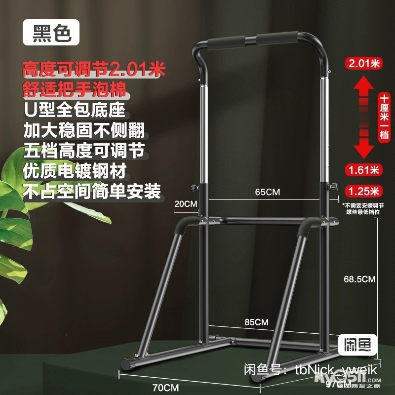 黑色单杠引体向上器 高1.9米。宽62厘米。可调节高度1.25-1.61米 ,新城花园A区自取,65元