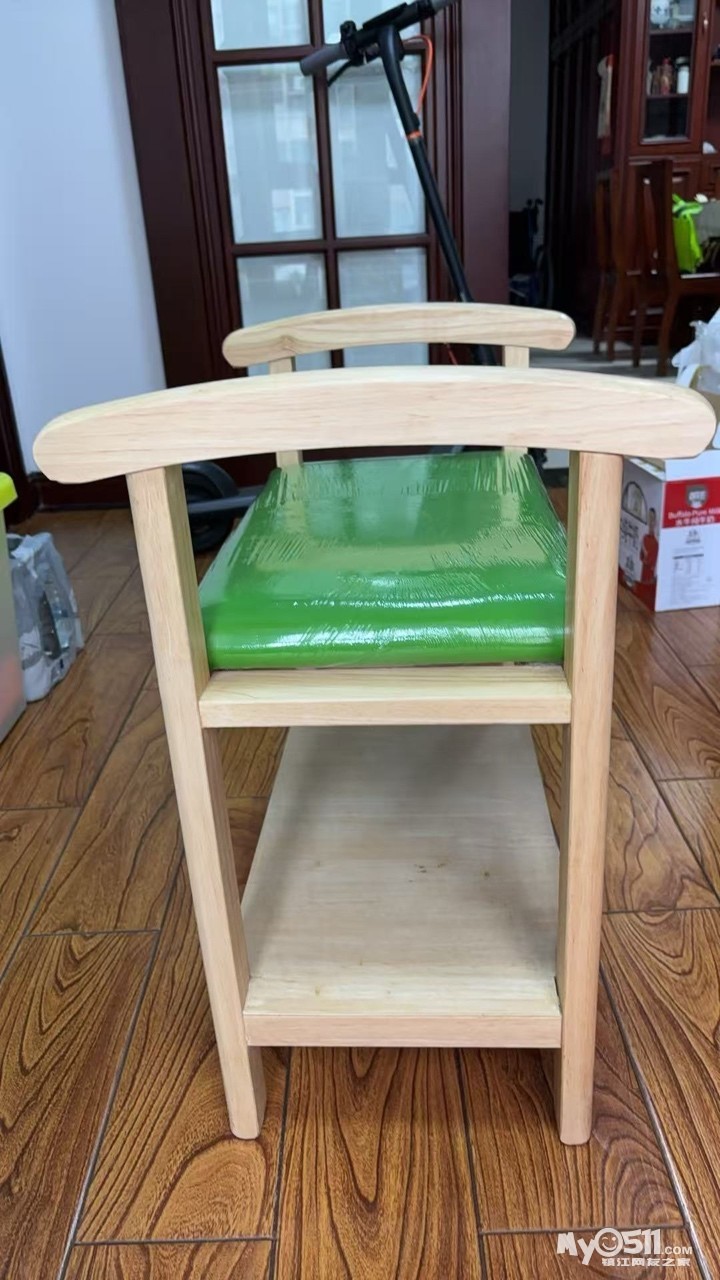 纯实木鞋凳,高59厘米、宽61厘米。上面可坐,下面放鞋。60元。