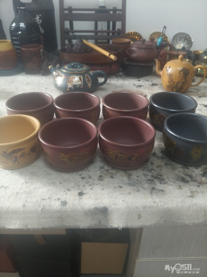 » 全新紫砂石黄、石红等珐琅彩五牛杯