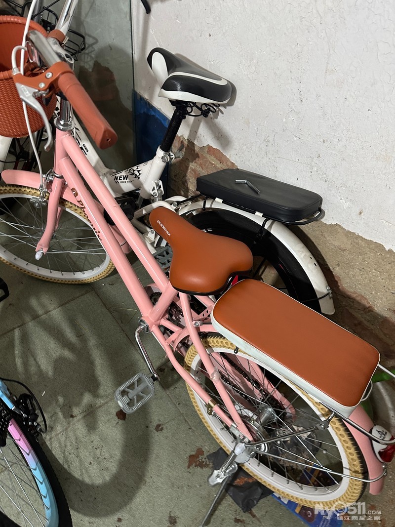 今年买的,少儿粉色凤凰自行车,带前置篮筐,棕色皮革坐垫,无变速,车况很好!车架结实,骑行舒适,刹车灵敏,轮胎完好。适合女生日常通勤代步,同城自提,喜欢的来问问看~