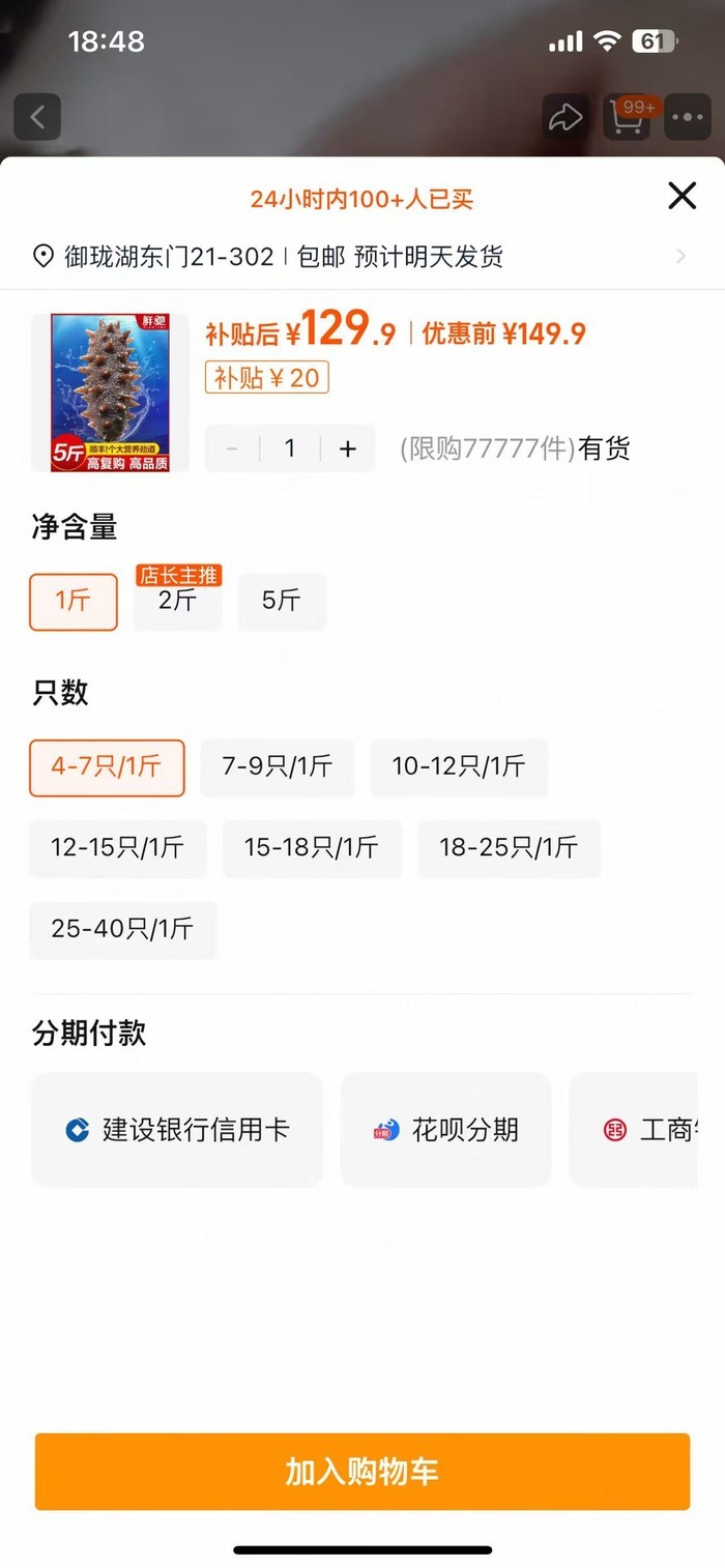 现在 100 一袋 7头 海参 1斤装