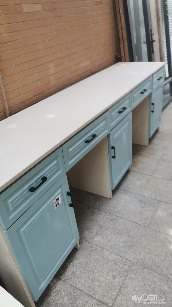 » 出不锈钢水槽带立柱脚110元 2.4米长写字台230 铁艺秋千850 课桌30圆凳子8 边柜350