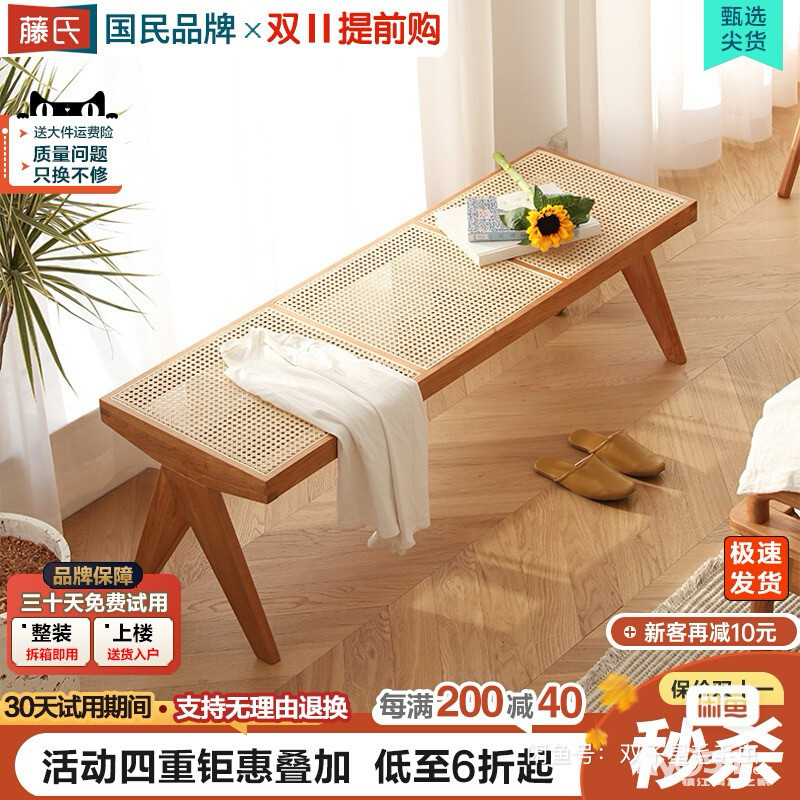 实木藤编昌迪加尔长凳,日式设计师风格,适合家用民宿当换鞋凳或餐凳~