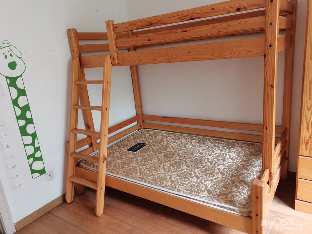 月星家居城买的品牌原木母子床,下铺1.35*2米,上铺1*2米,送配套棕垫。在恒美山庄1.5楼