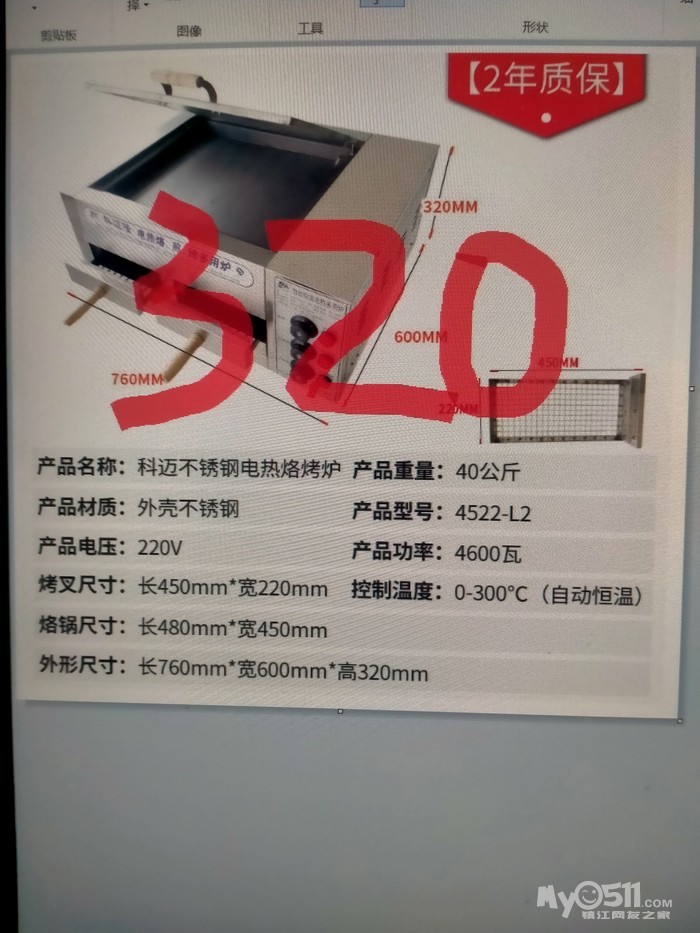 科迈电热不锈钢烙烤炉转让 300元,18052757059 [广告推广]