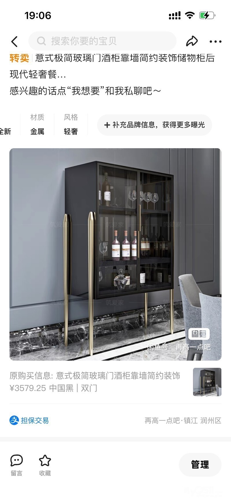 轻奢酒柜,百搭款。长100高165宽45.