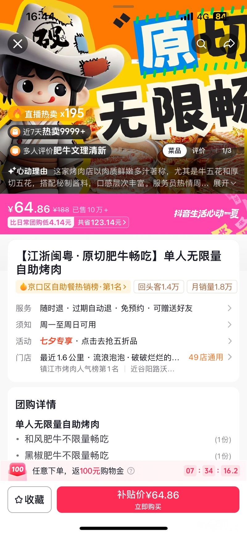» 转让一张 破破烂烂烤肉成人自助45元一位