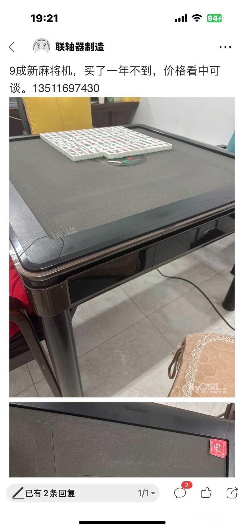 去年买的全新麻将机,9成新,几乎没怎么用,原价2000多,现1000转让,看中可谈!