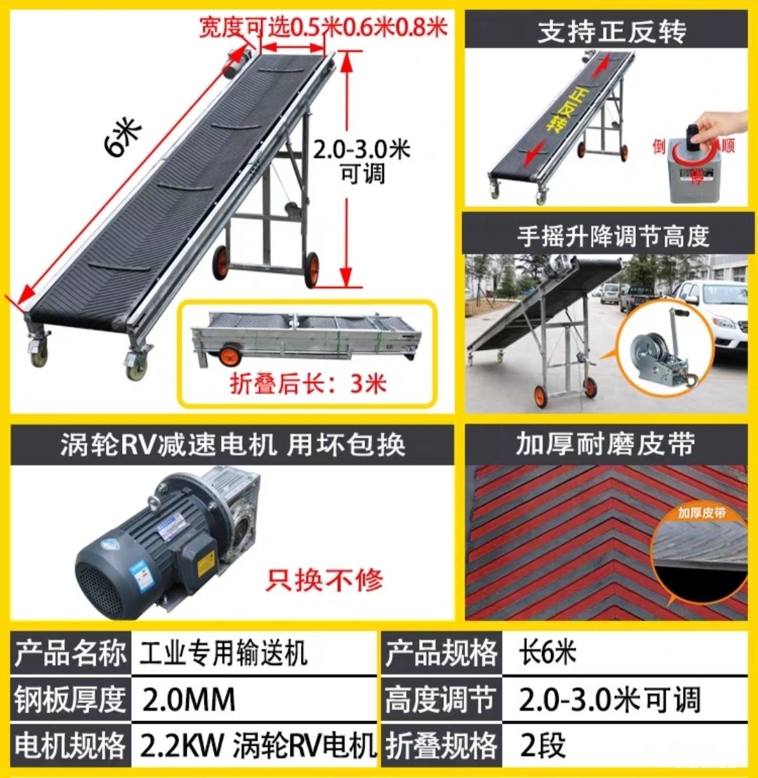 6米折叠输送机,三相电,带宽50CM,手摇升降,倒顺挡