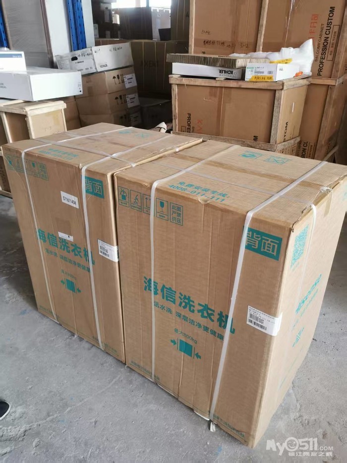 3、两台全新 海信高品质全自动滚筒式洗衣机 颜色墨玉青 净重60kg 毛重65kg