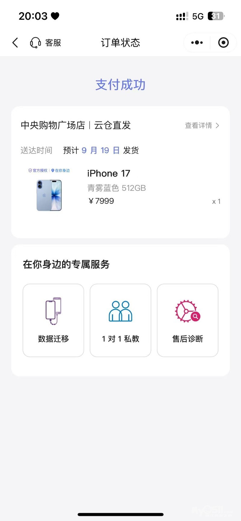 苹果17蓝色512g,9.19发货