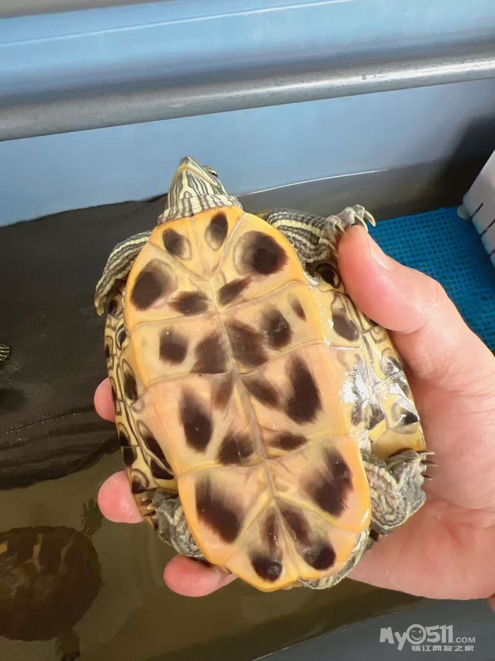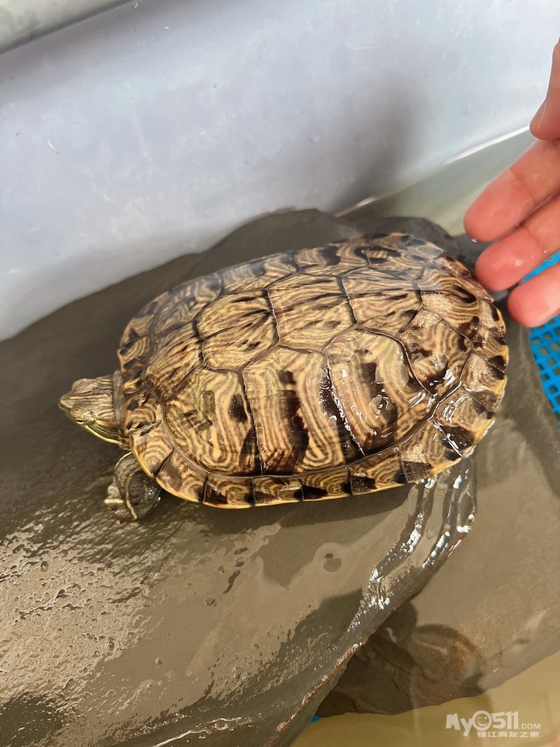 1、底板花纹奇特,爆纹、羽化发散,应该是格兰德彩龟基因,背甲13+,虎斑花纹,超大头,进食迅猛,每年长3cm左右,30元,