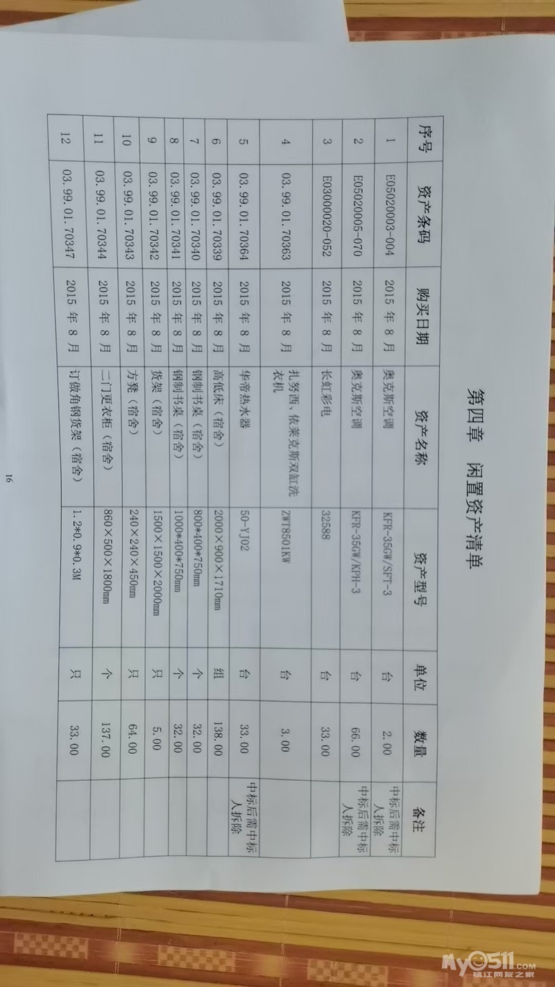 有一批宾馆的物品处置,有要的打电话,最好来现场,请大家看清单