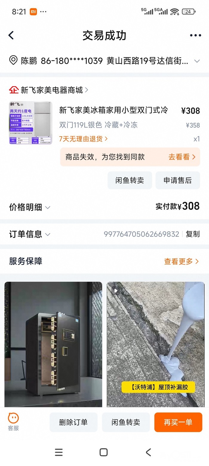冰箱保险箱需要联系自提