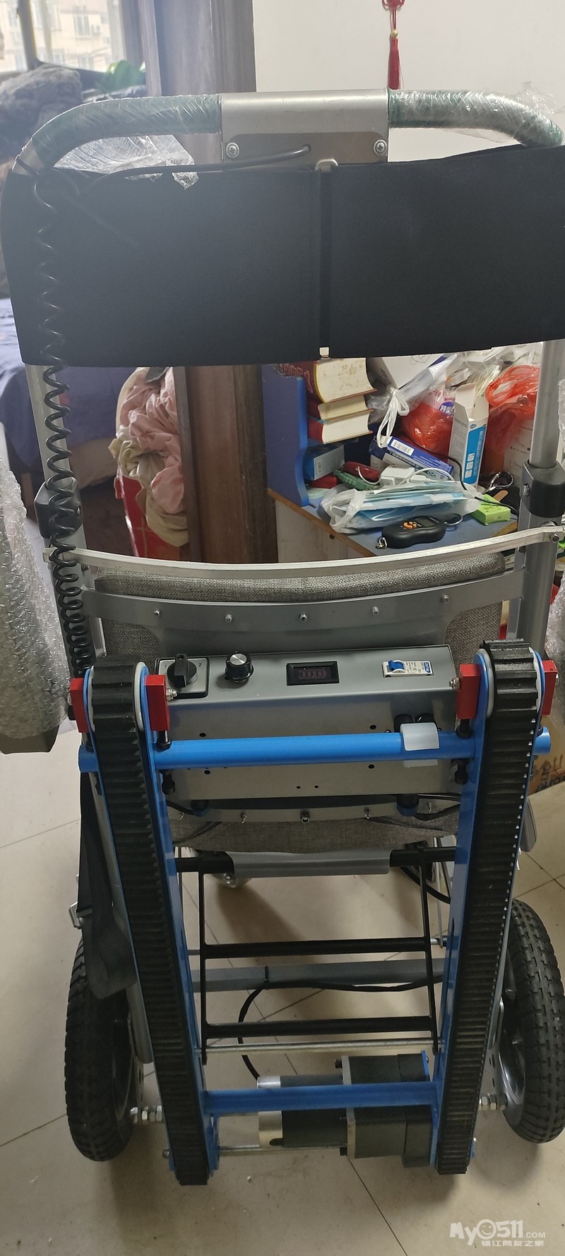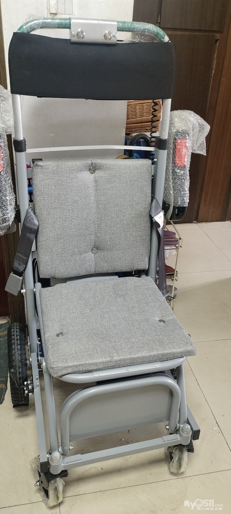 全新上楼机,灰色座椅,带安全带,靠背舒服。车身结实,加厚防滑轮胎,爬坡能力强。座椅面料干净整洁,适合老人上楼。