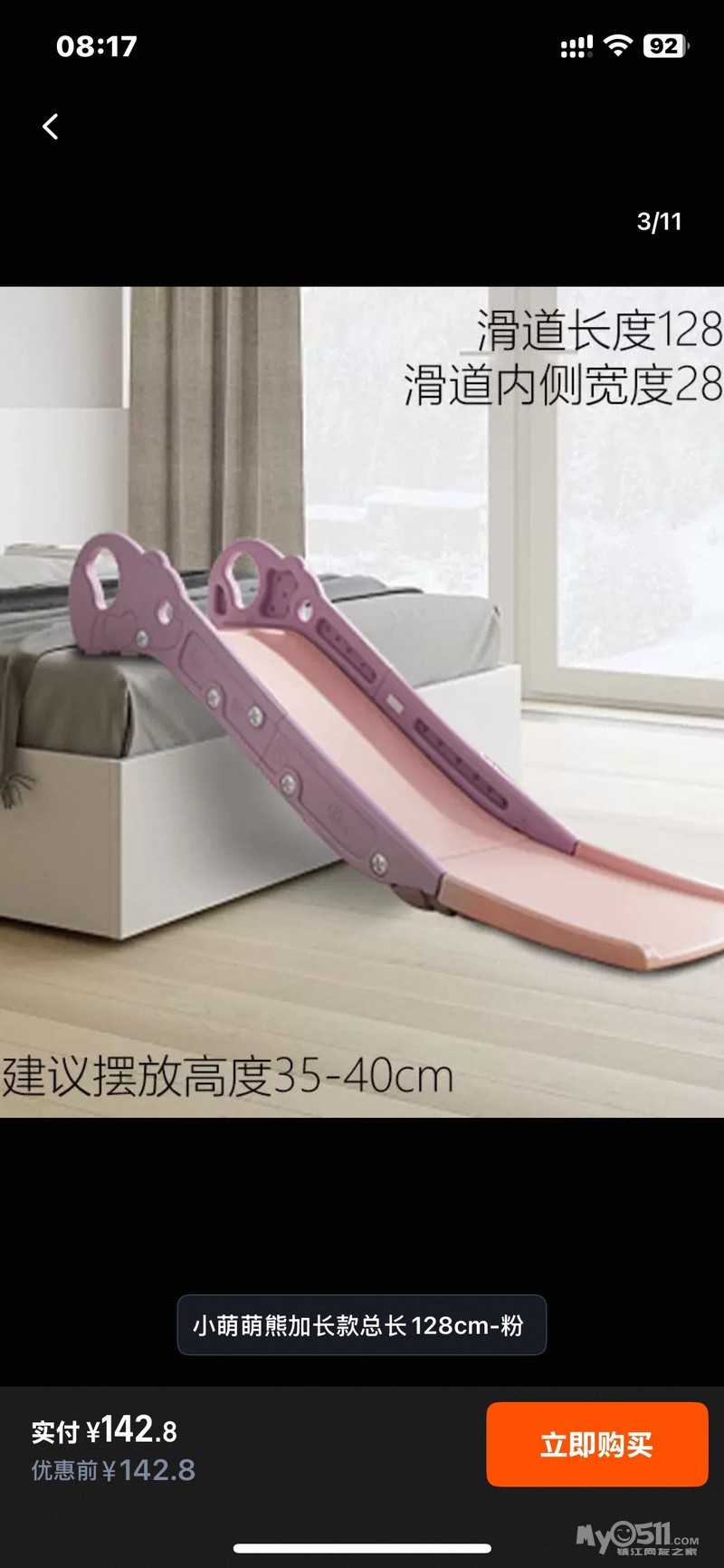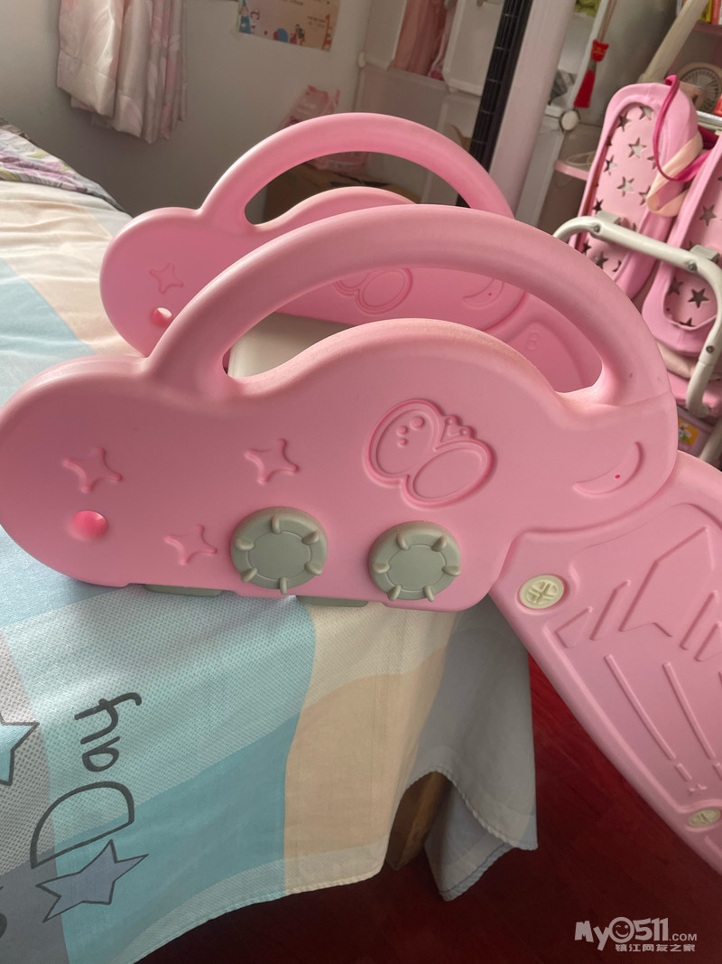 孩子大了,滑梯闲置,床边滑梯,放在床边或者沙发边上都可以,不玩的时候可以收起来,放在门后,不占太大空间,底部防滑,安全,自家孩子玩的,现在孩子大了,1~6岁都可以玩,粉色 60自提,学府路