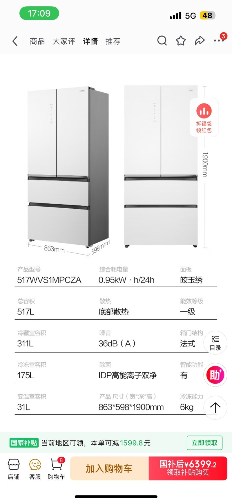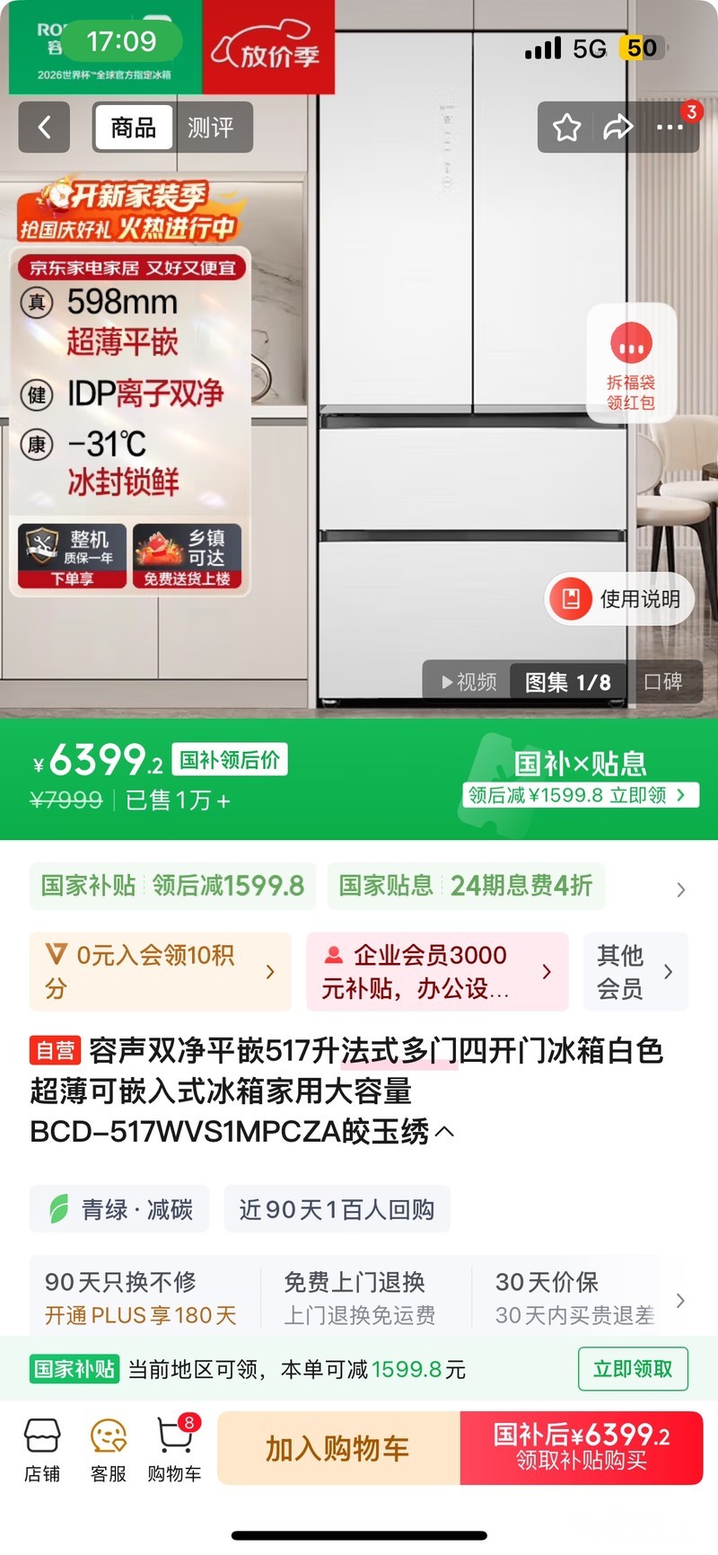 要装修占地方,处理一台全新冰箱,超低价5100处理不还价,原价8000国补到手6400。