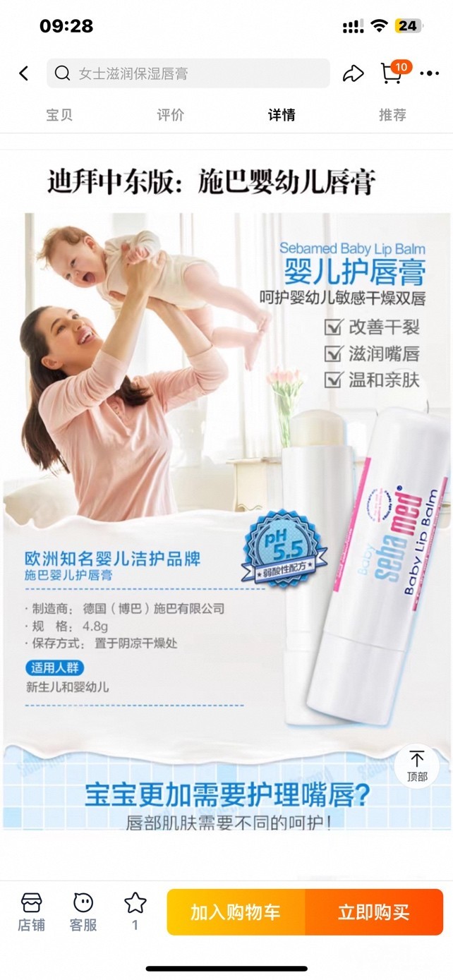 迪拜德国进口施巴Sebamed婴幼儿保湿滋润唇膏 [广告推广]