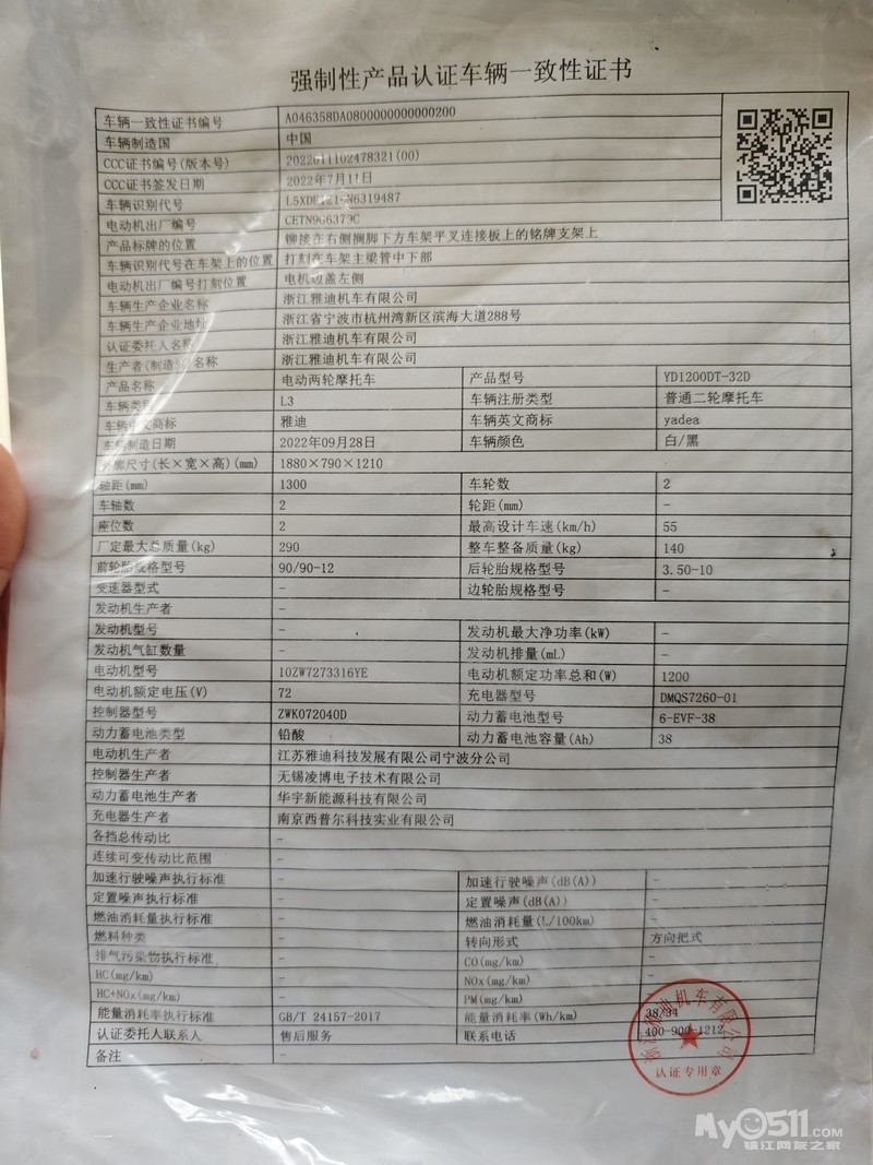 » 72v雅迪电动车,闲置出售