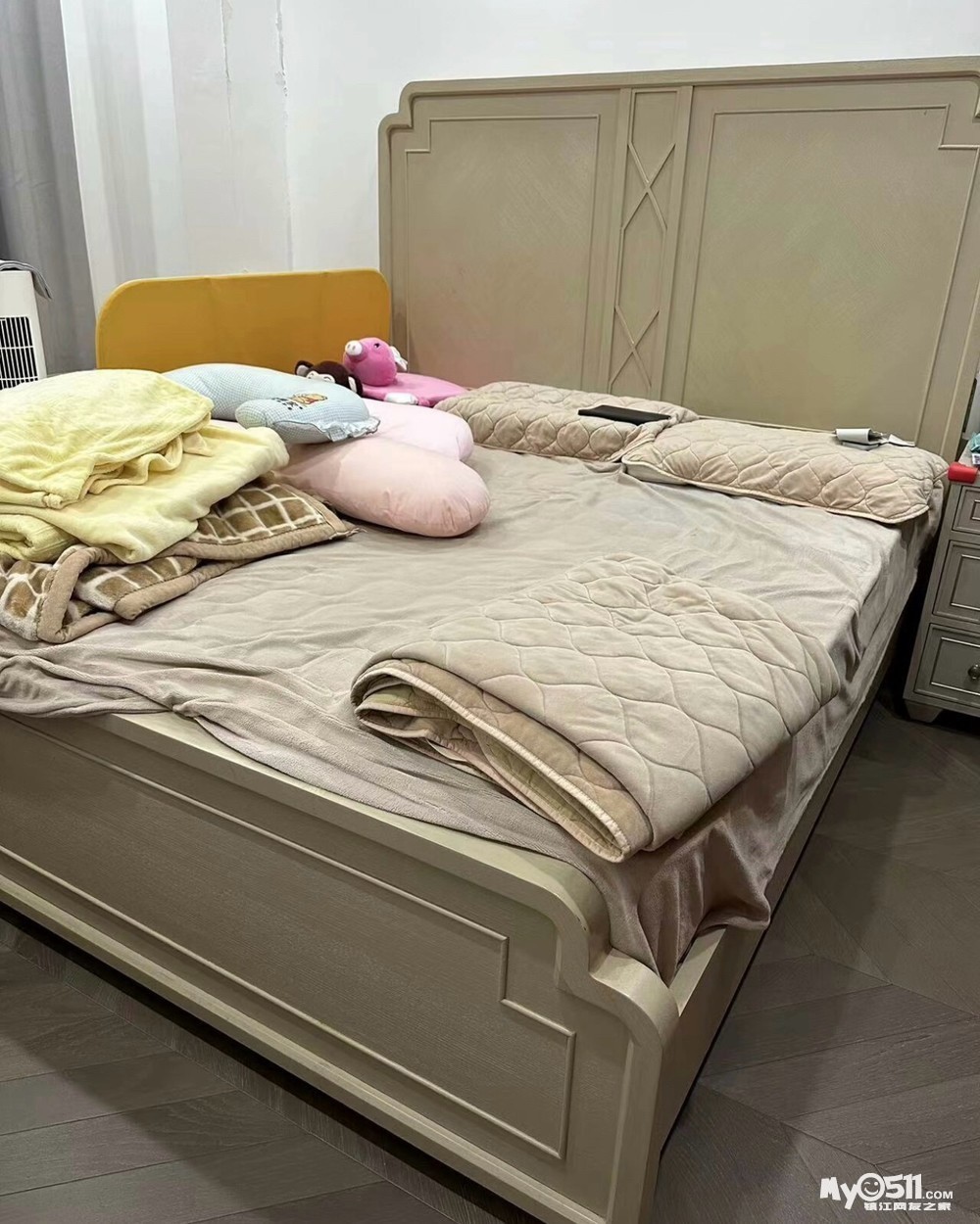 1.8米*2米 全部都是实木床,床头也是实木,没有床头柜,只有床和床垫一起200元