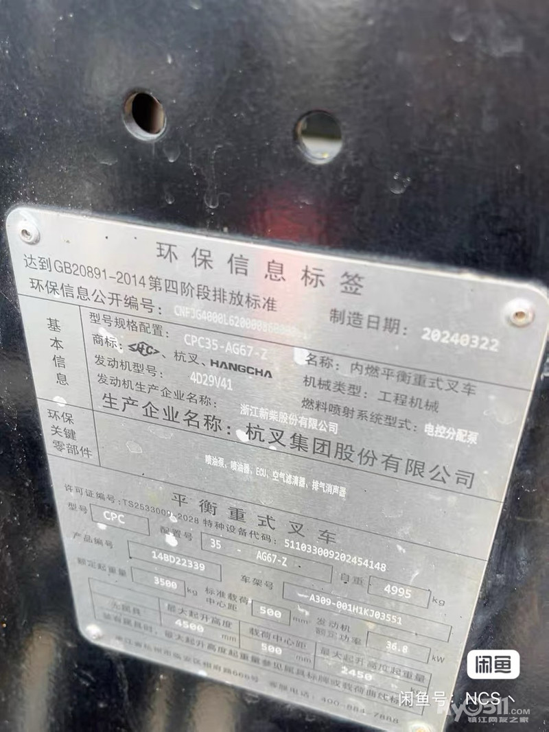急出准新24年杭州叉车A35Z,出租版3.5吨3节门架,升高4.5米,3.8吨胎前250加大轮胎。后加强半实心,跑了500小时,车况很好!动力强劲,手动挡操作灵活。