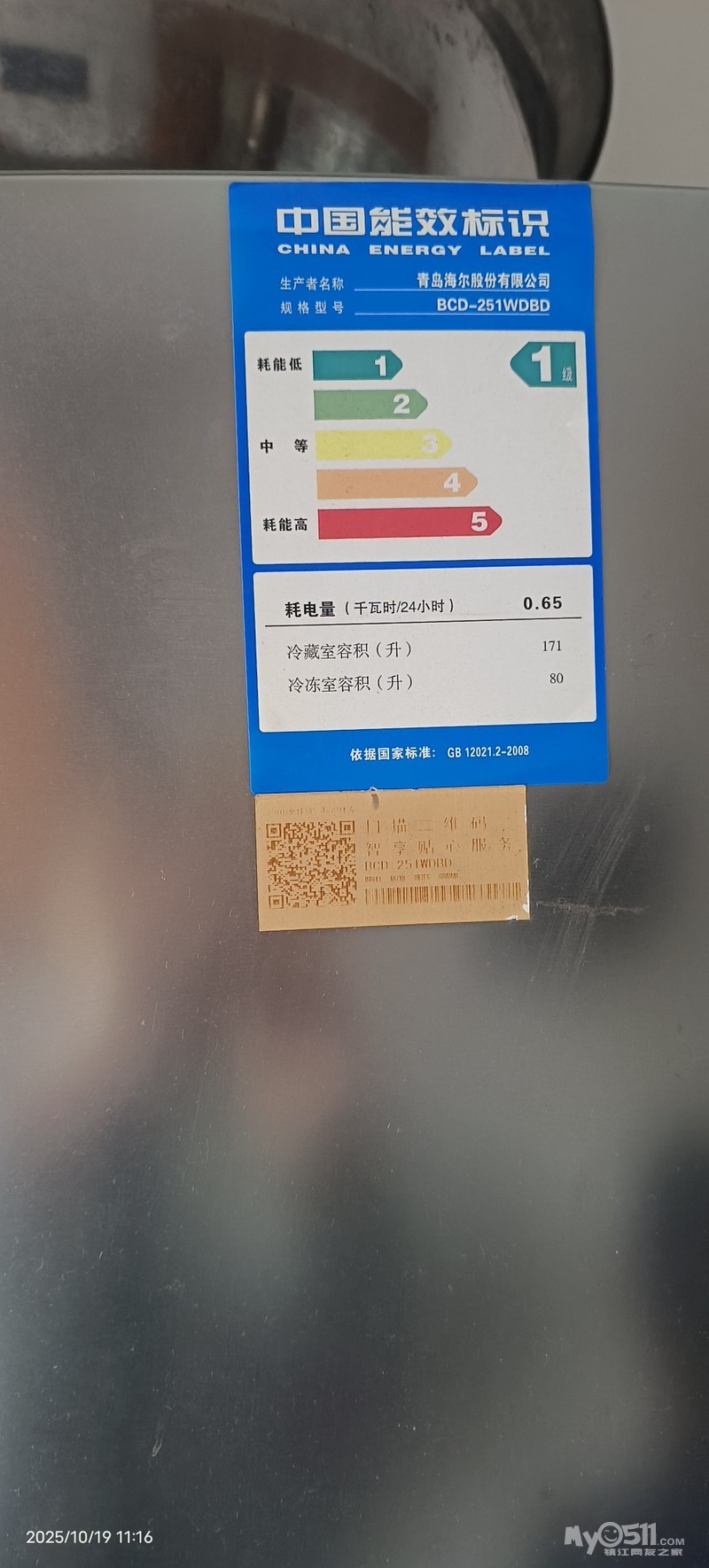 海尔双开门冰箱251升,只用了半年,1500元