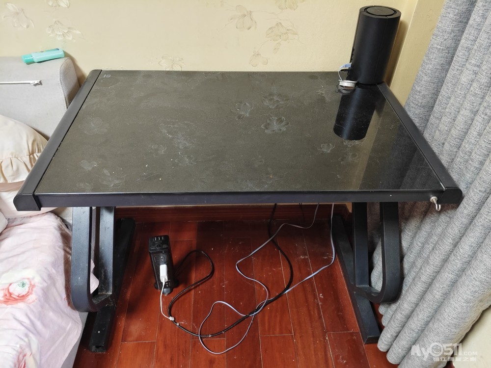 铁架子,钢化玻璃桌面,长99cm,宽60cm,高75cm,100块自提,v18652881569
