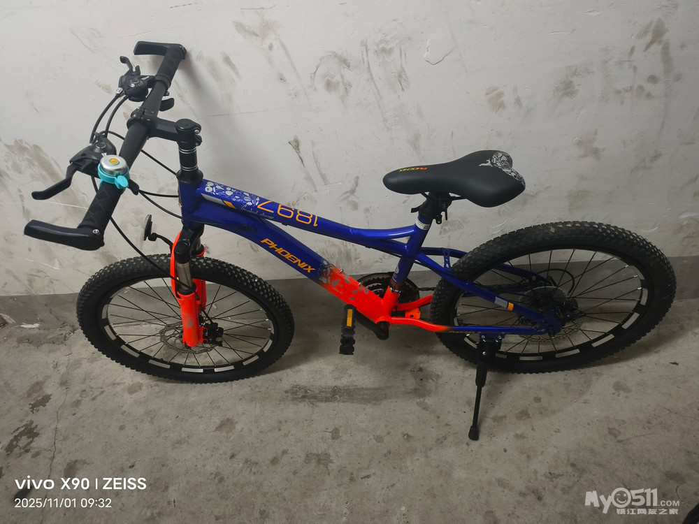 凤凰牌儿童山地自行车,蓝橙配色,男孩女孩都可以骑~