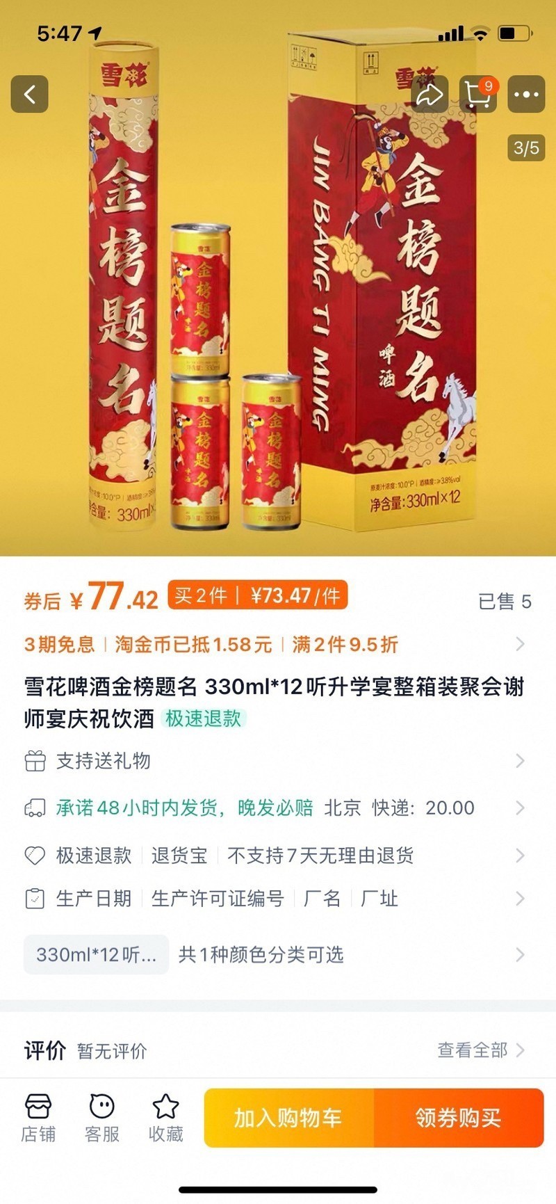 » 出 雪花啤酒,20元一箱