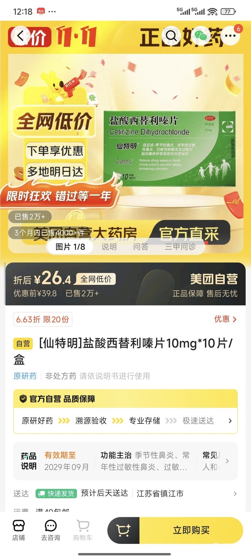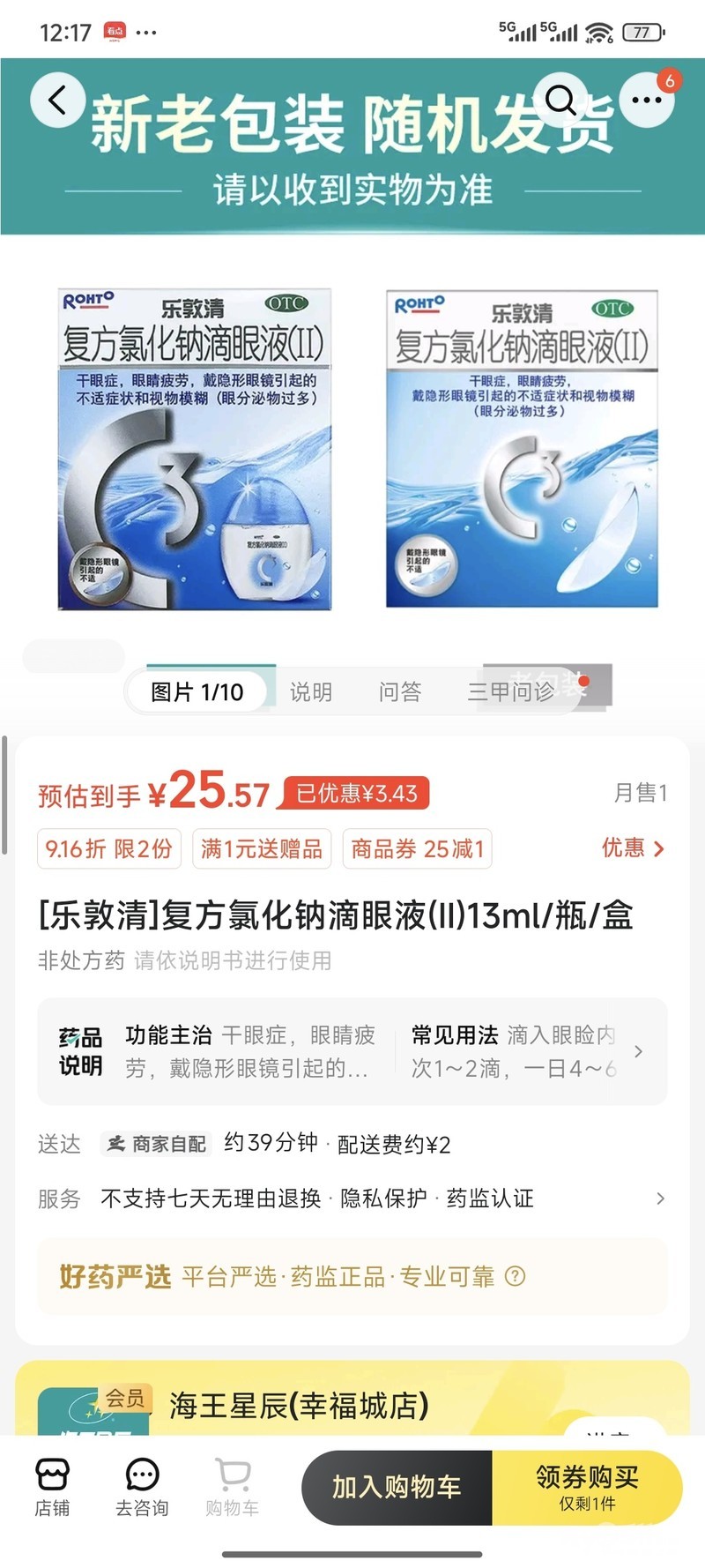 » 转一盒乐敦清复方氯化钠滴眼液 仙特明西替利嗪片,15块钱一合