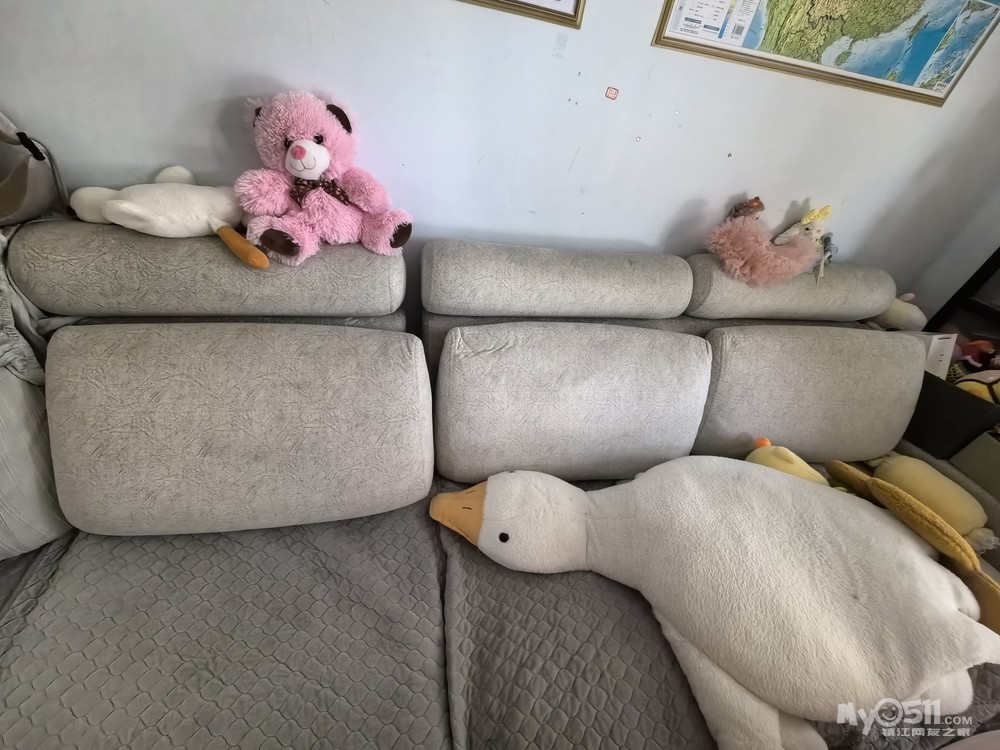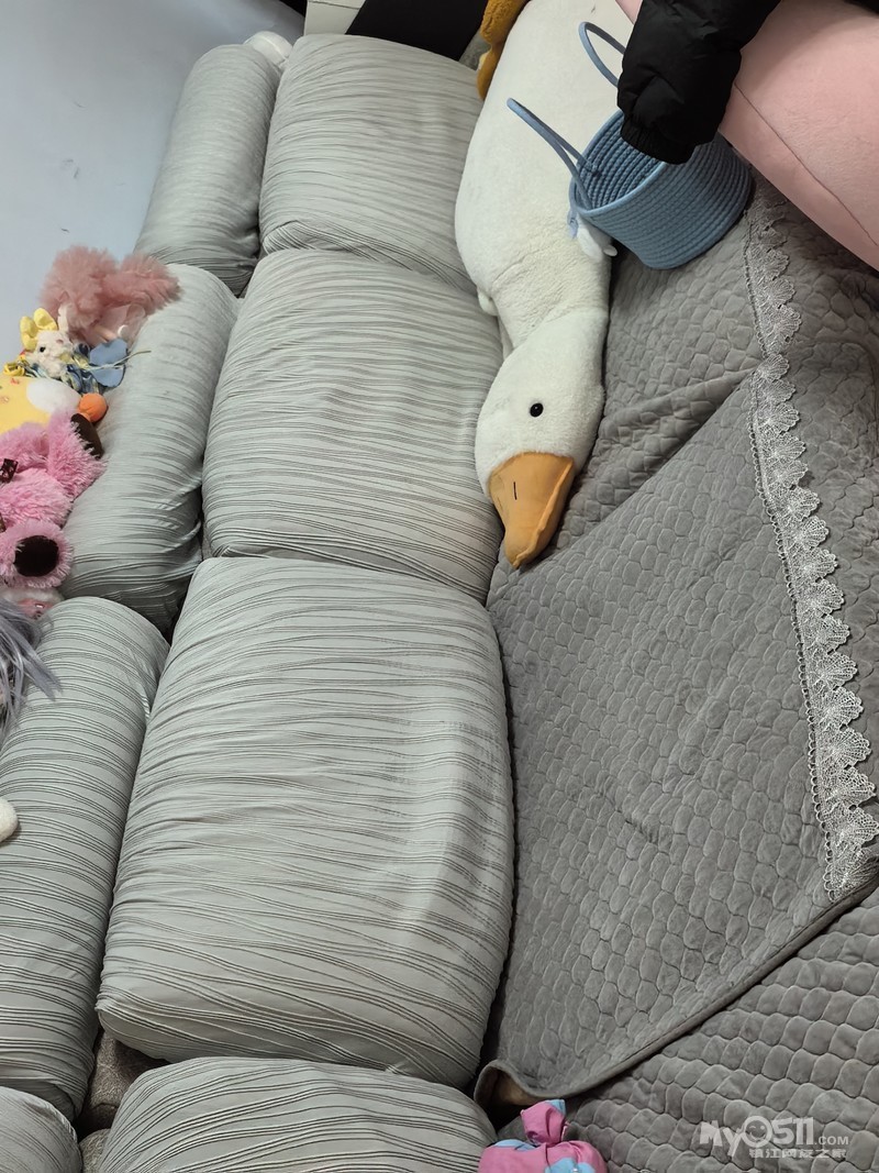 沙发质量很好,家里有孩子所以比较乱,套着沙发套,拿掉后还是挺新的,有意者随时联系