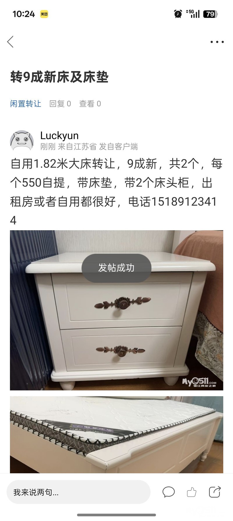 转让床,送床头柜,垫子 [广告推广]
