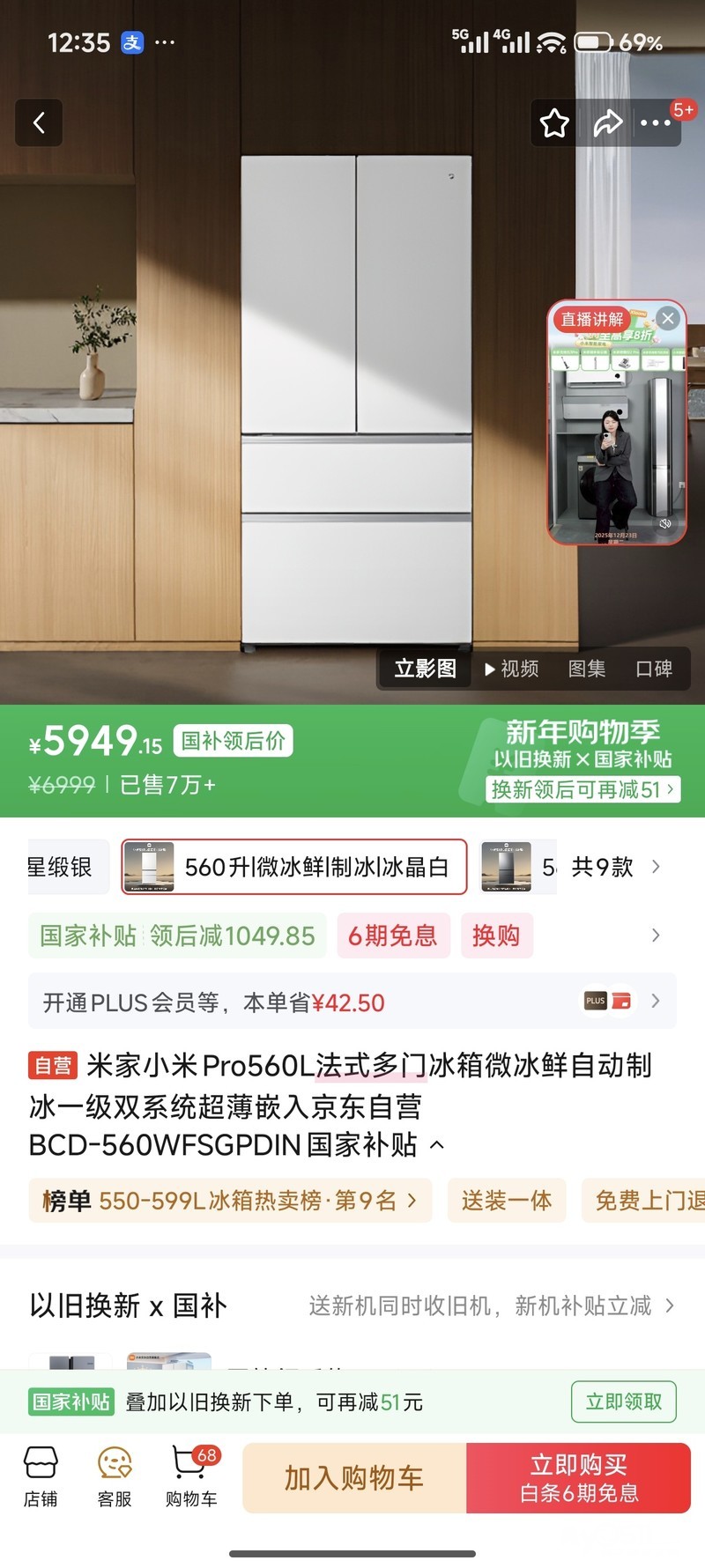 » 全新小米pro冰箱560L转让