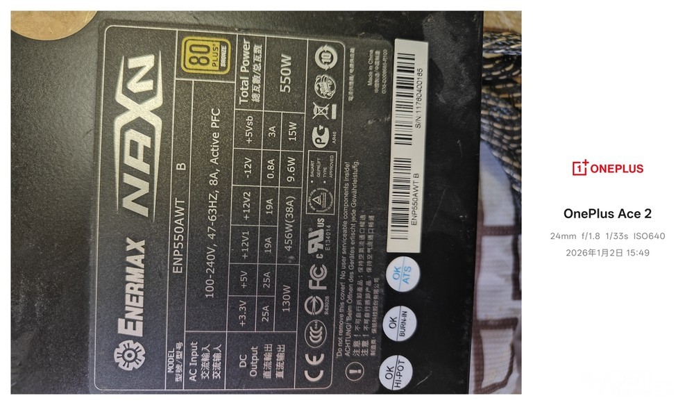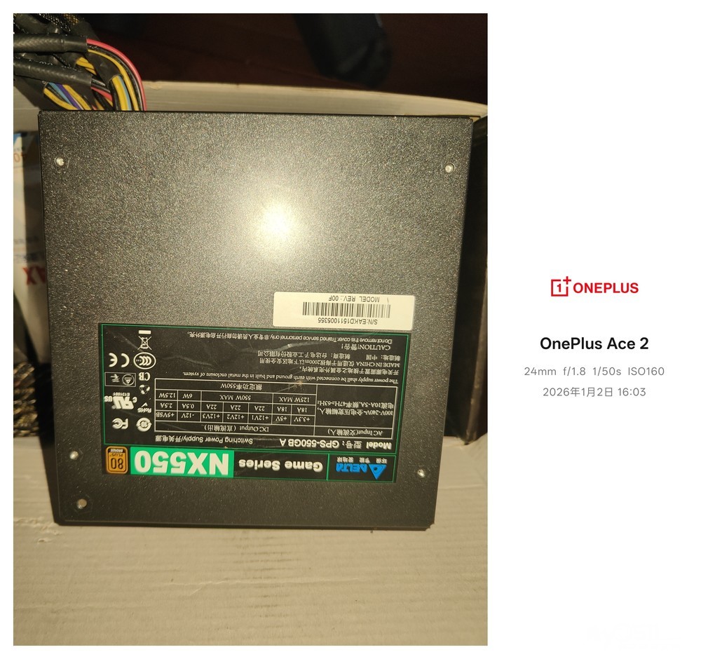 安耐美额定550瓦,日系电源,箱书全(过保),cpu4+4,显卡供电8+6,90元