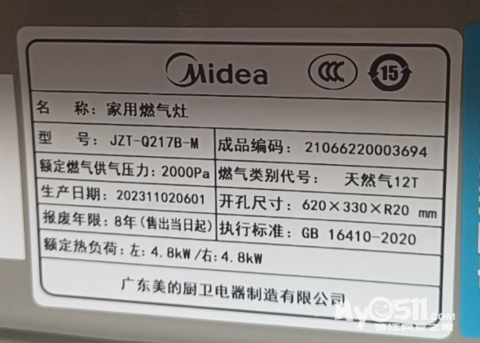 美的燃气灶2023.11月份生产的,需要联系18151413054