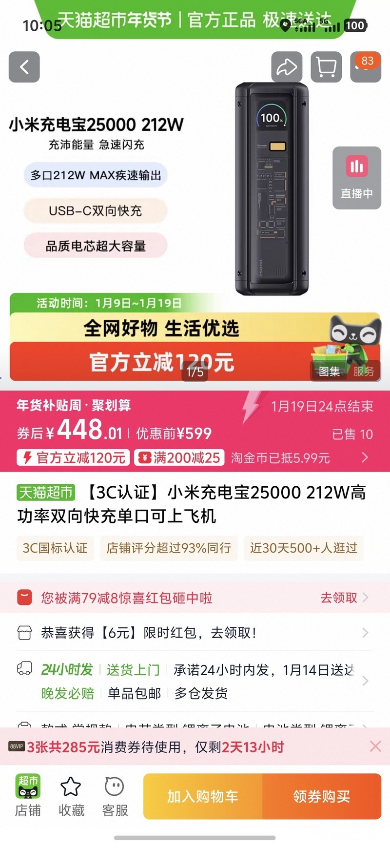» 转一个闲置9.9新小米25000毫安充电器212w