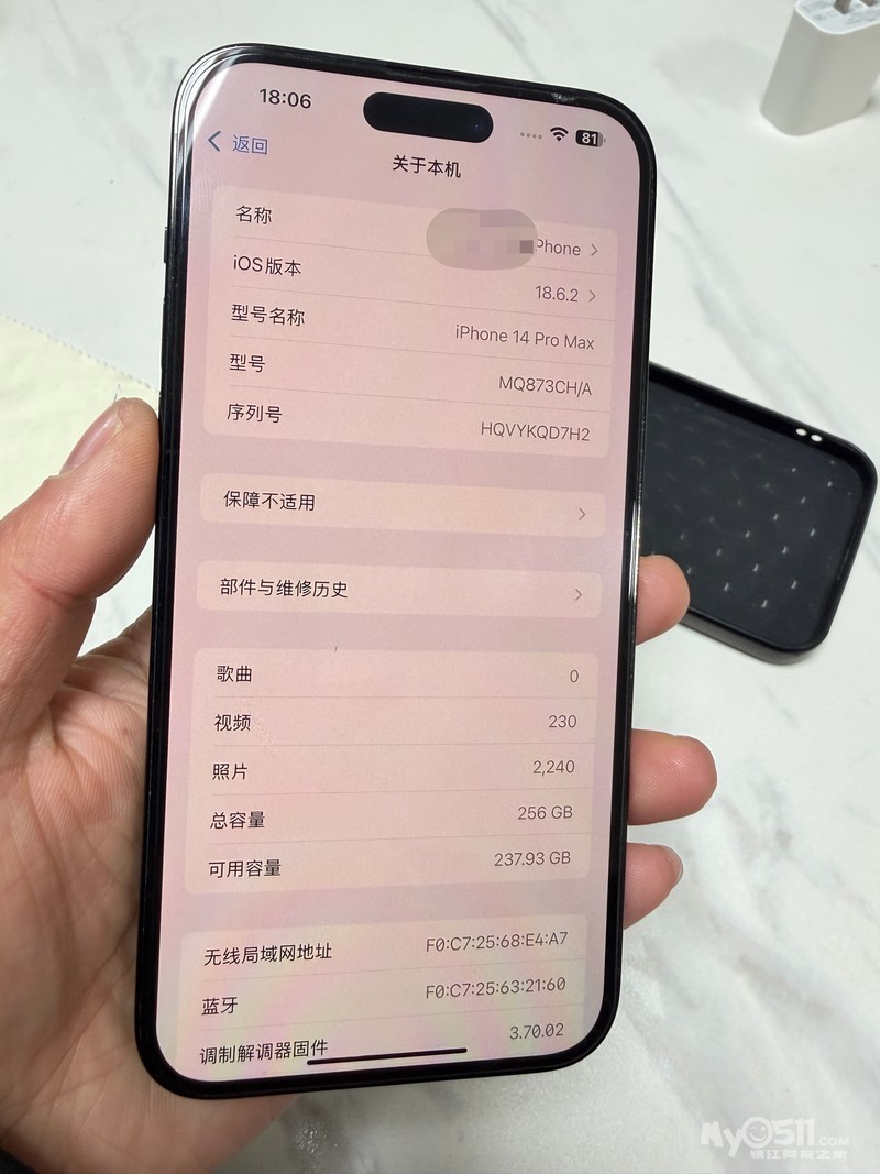 出自用国行苹果14ProMax 256G深空灰。 双卡双待 电池效率82% 功能全正常,没有任何问题。换过原装屏,没有搬IC 有弹窗。便宜出2700不议价