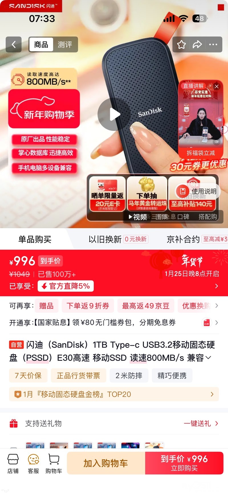 » 出一个1T闪迪移动固态SSD