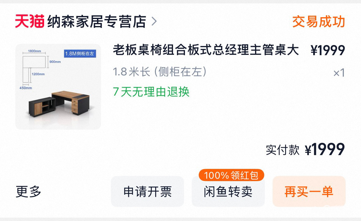 老板桌椅带边柜180*90