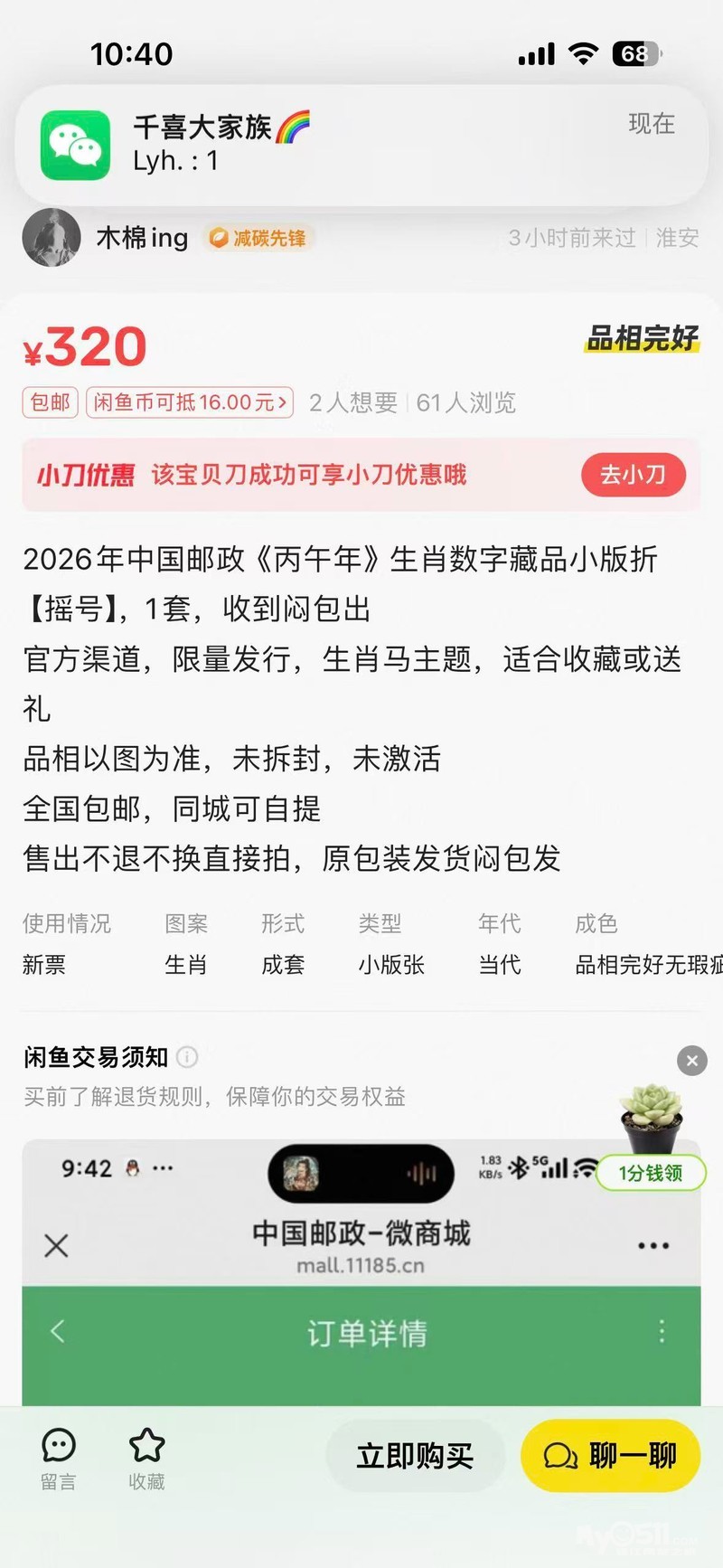 2026年中国邮政《丙午年》生肖数字藏品小版折[
